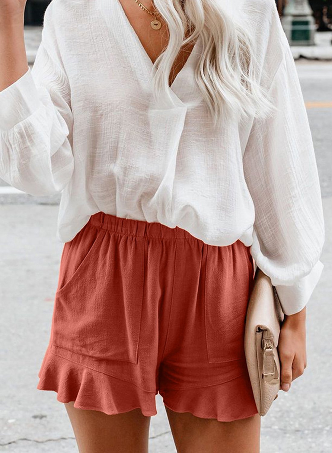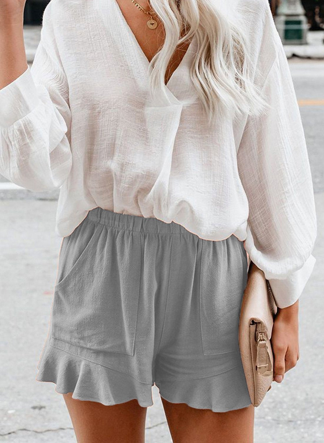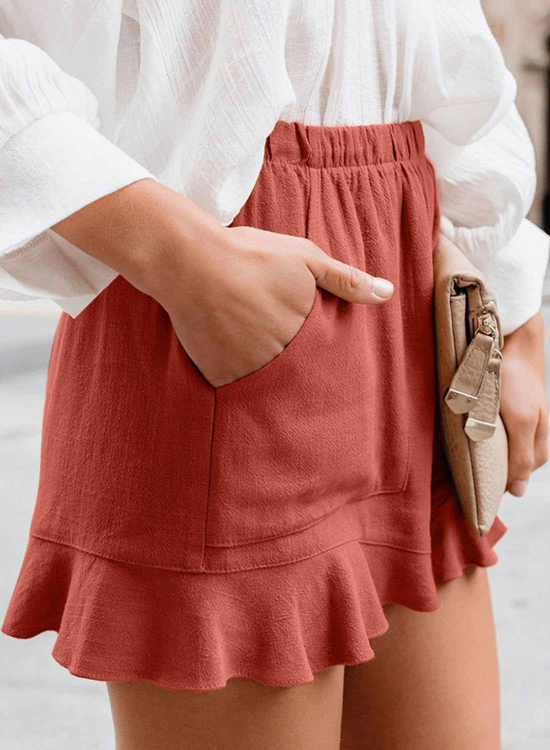 Elastic Waistband Flounce Casual Shorts