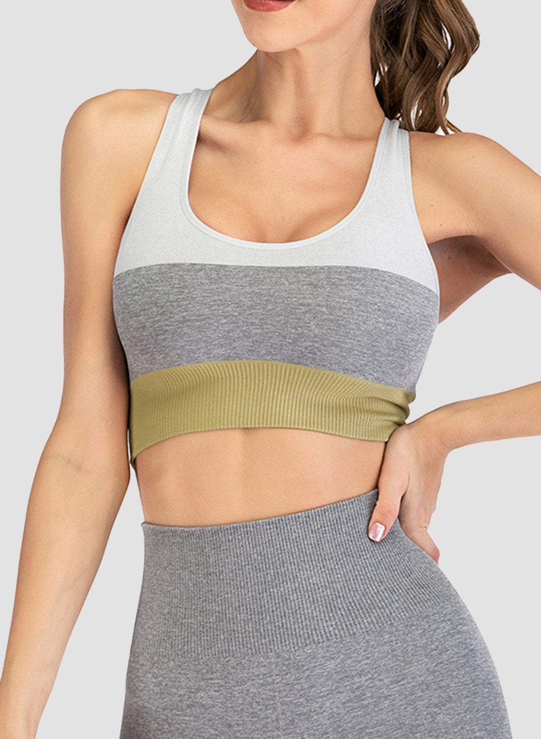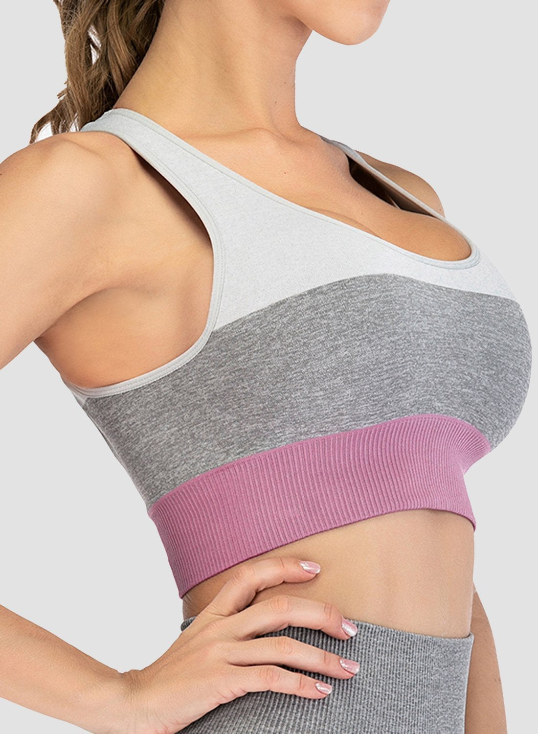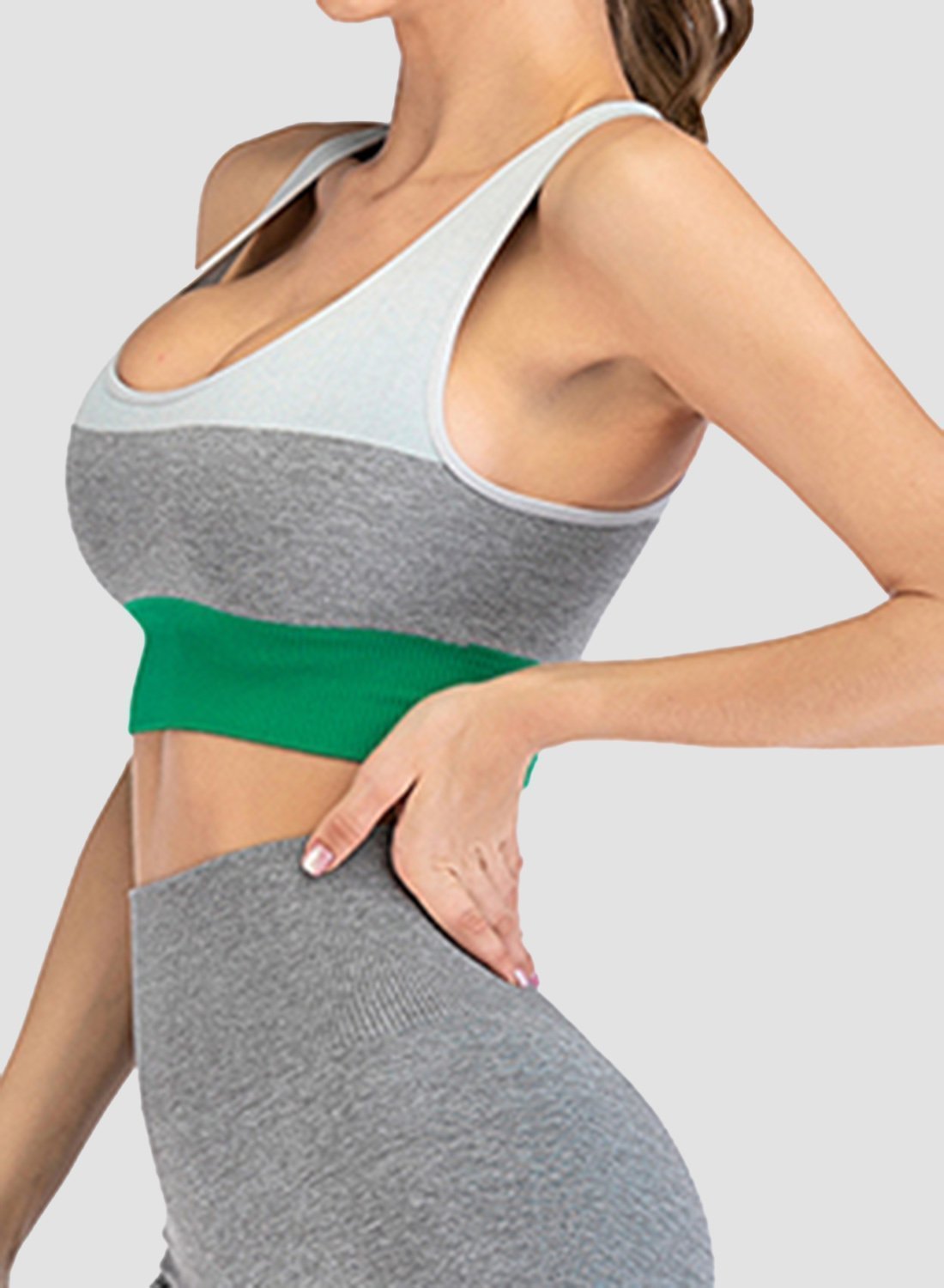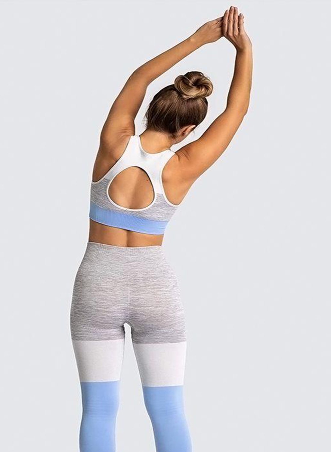 Features: Seamless; Rare Three-tone; Chest Pads; Ultra Soft and Comfortable; Tight Fit; Matching Pants for You to Choose