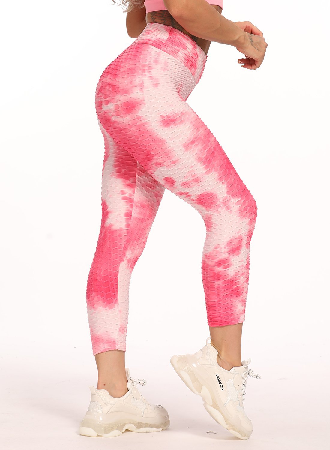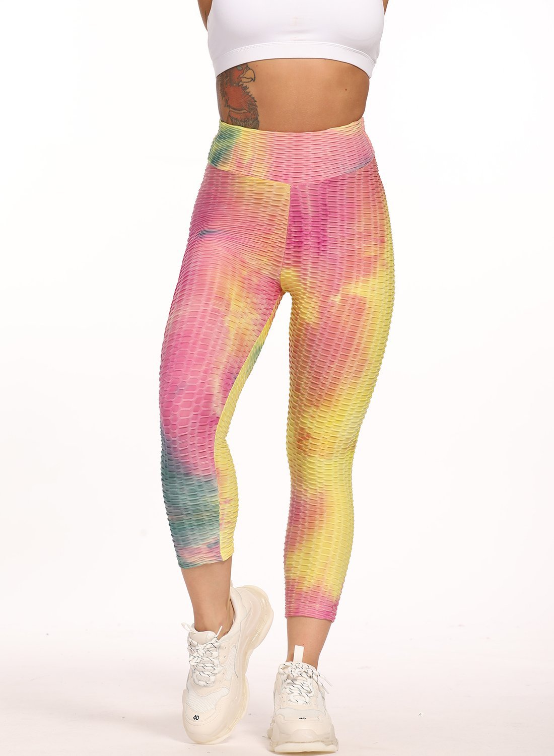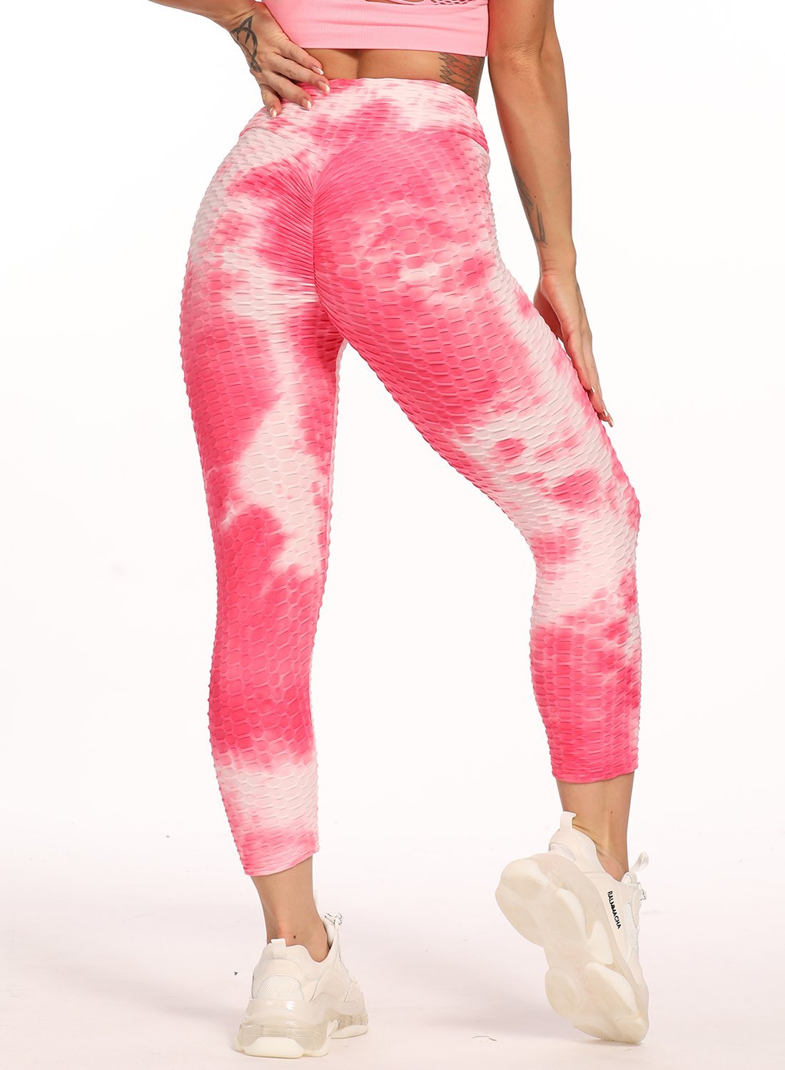 Stretchy Textured Tie-dyed Ruched Sports Cropped Leggings