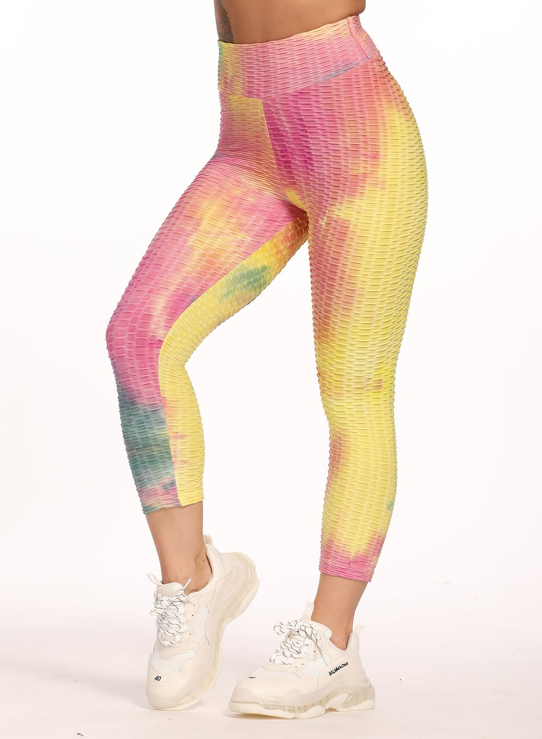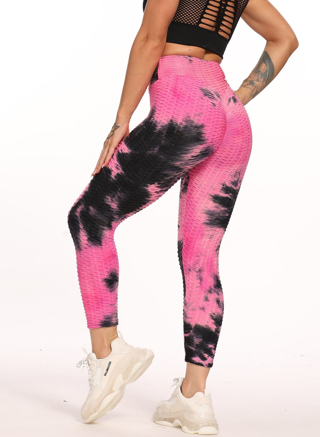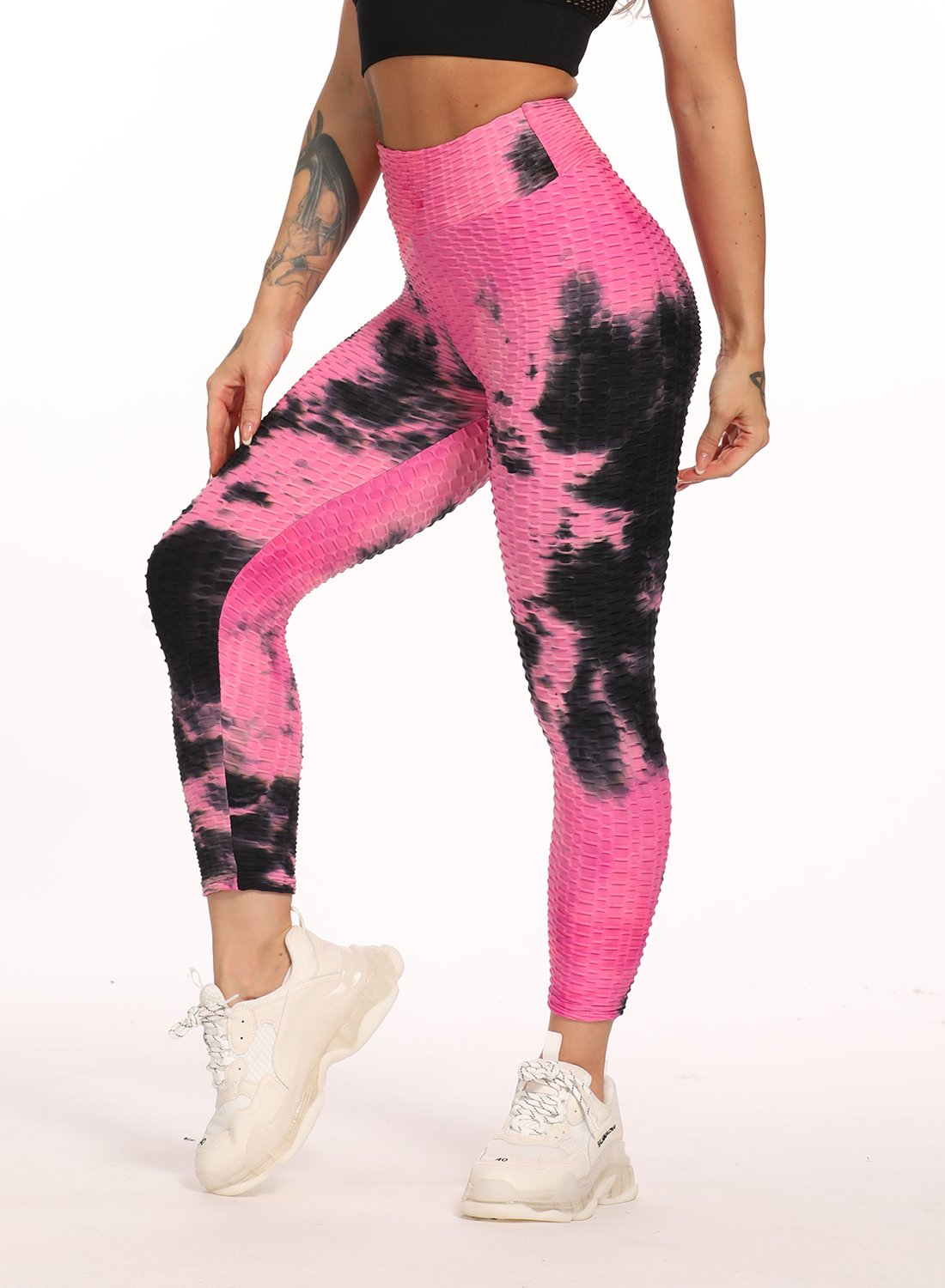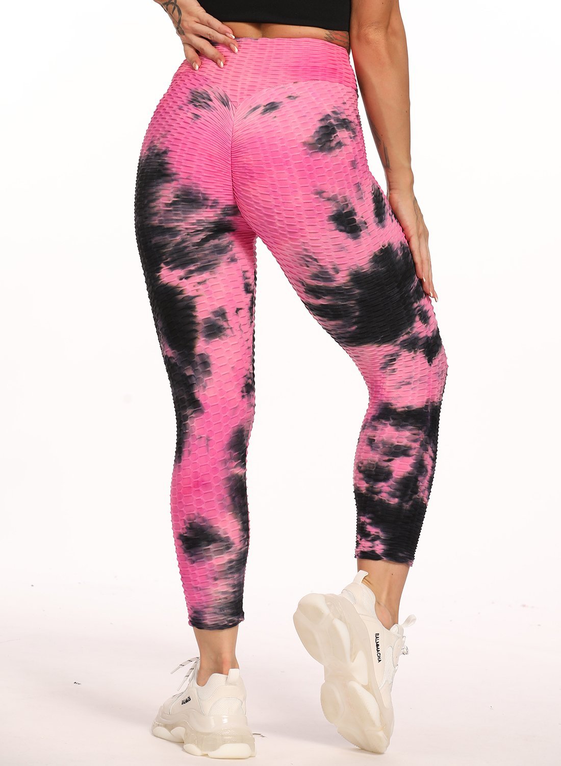 Stretchy Textured Tie-dyed Ruched Sports Cropped Leggings