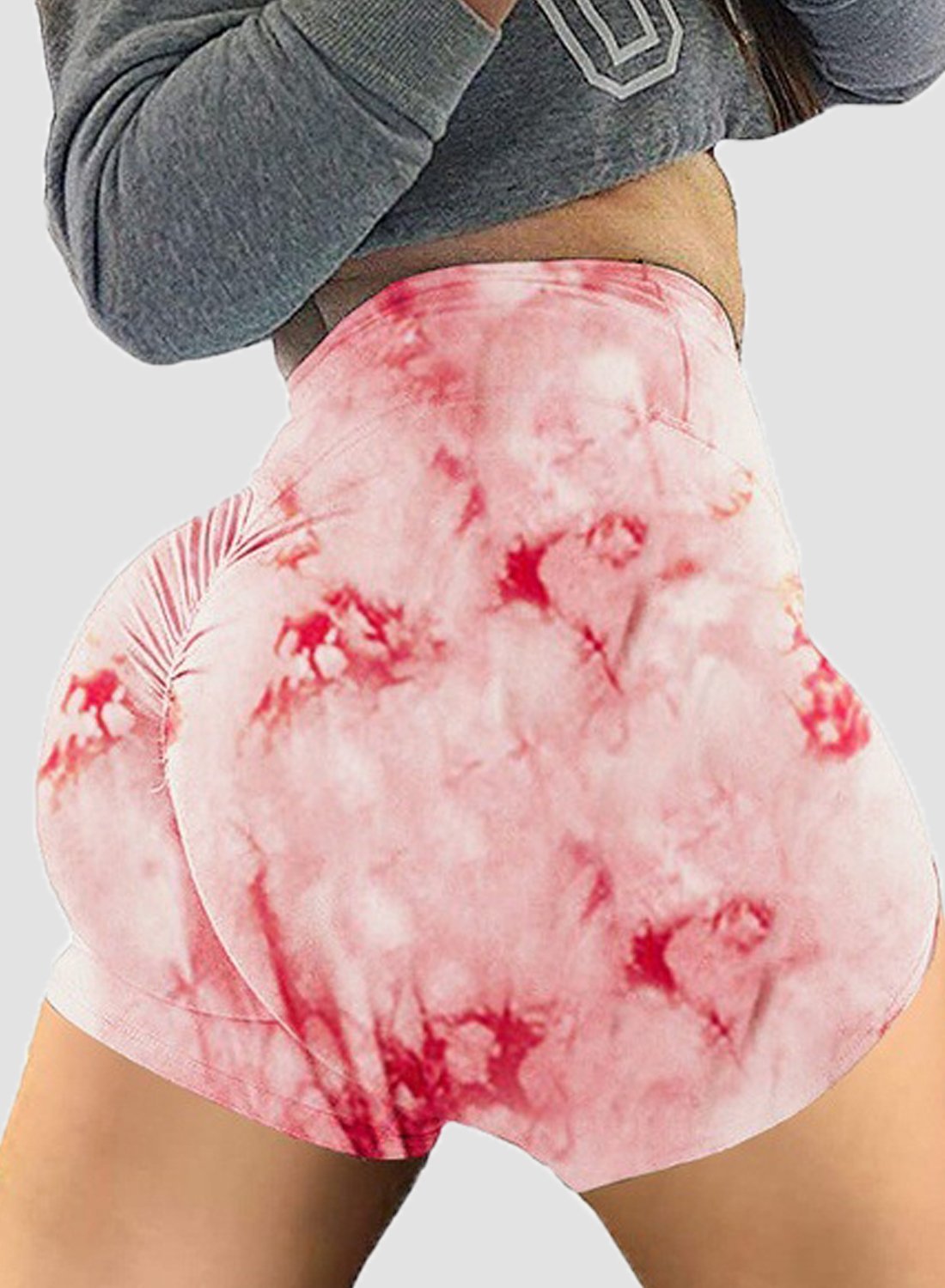 Women Ruched Tie Dye Yoga Shorts